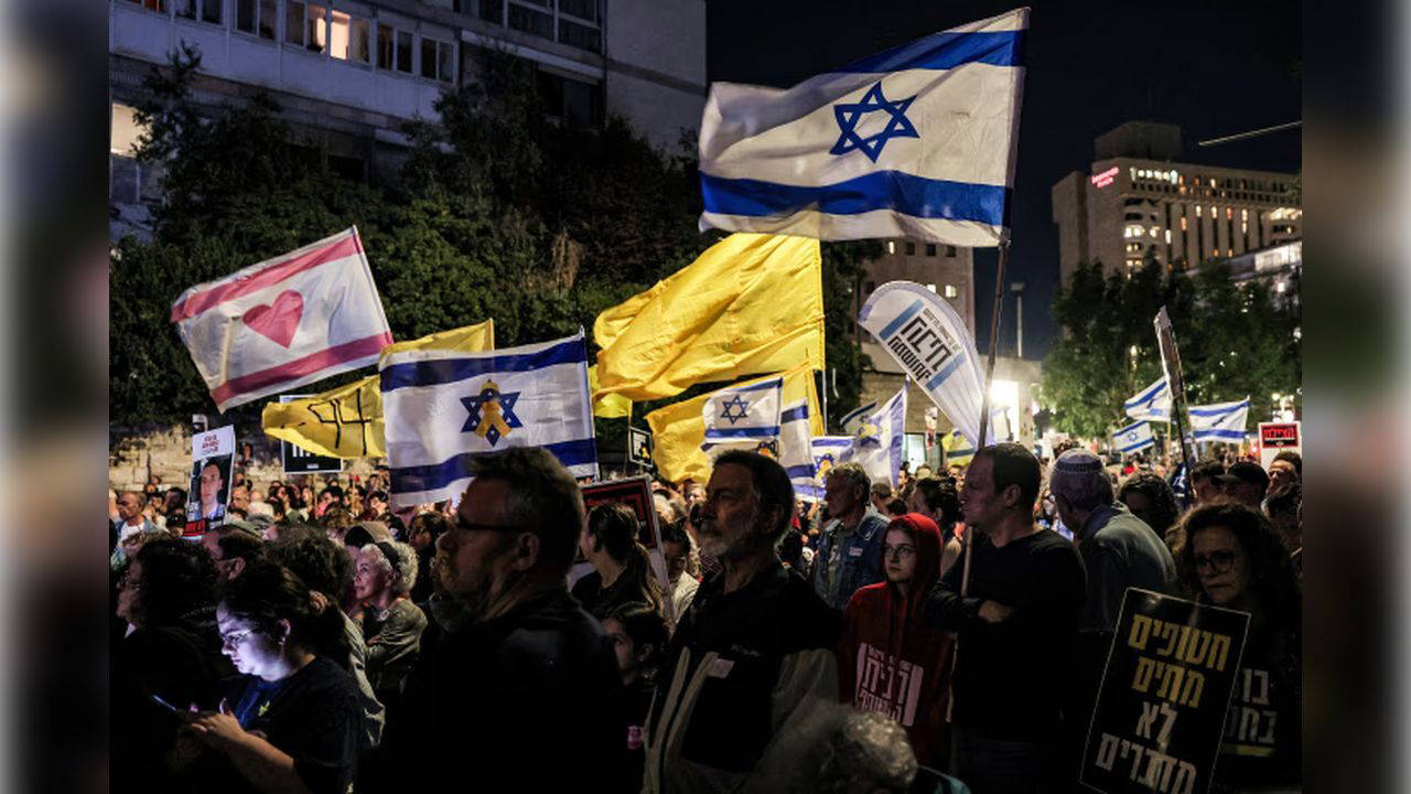 Gazze Şeridi’ndeki İsrailli esirlerin aileleri ve aktivistler, Batı Kudüs’te Başbakan Binyamin Netanyahu’nun evi önünde, esir takası ve ateşkes anlaşmasının bir an önce tamamlanmas�...